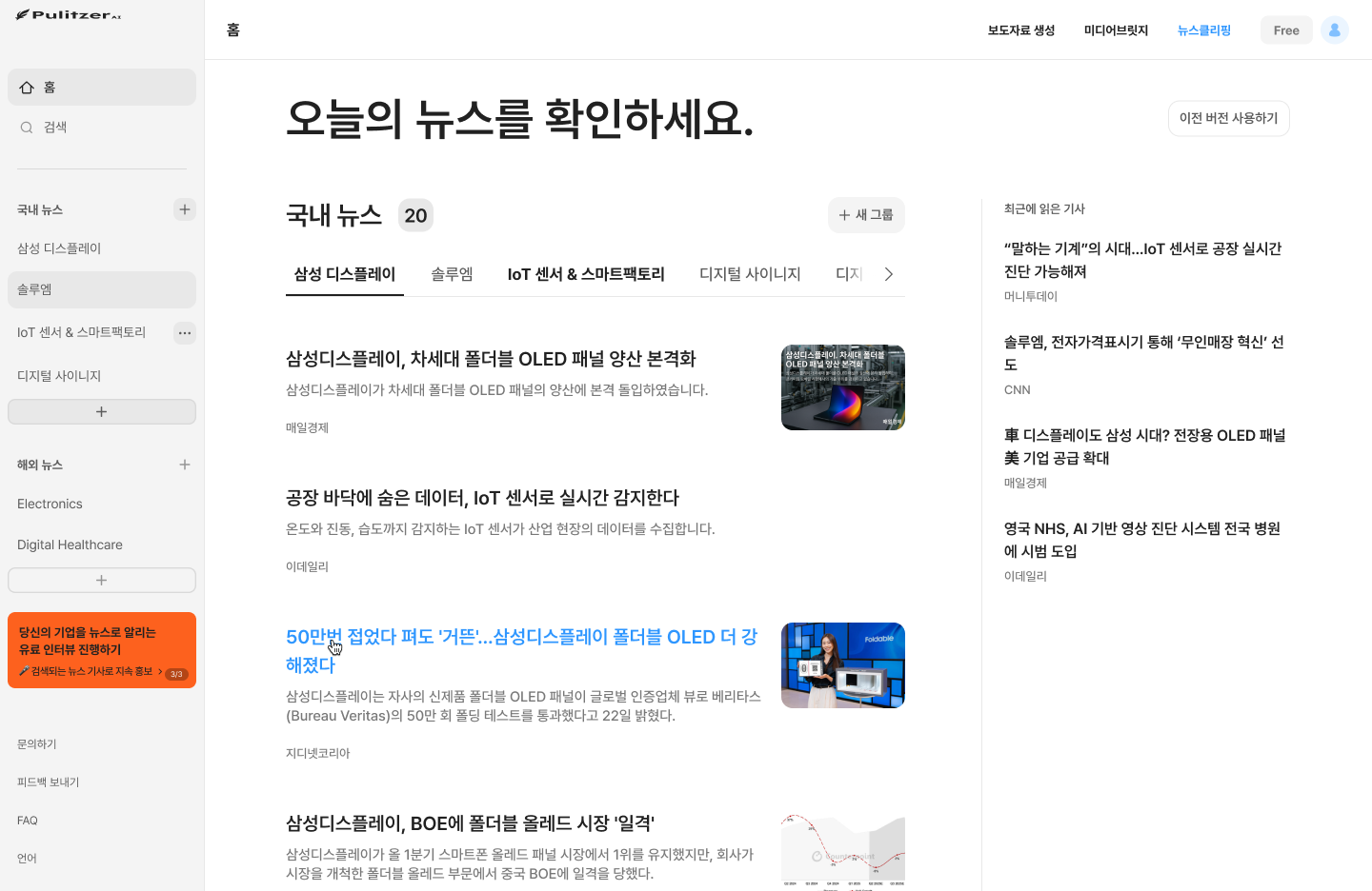 퓰리처 AI의 핵심 기능 중 하나인 뉴스클리핑이 한층 업그레이드되었습니다! |