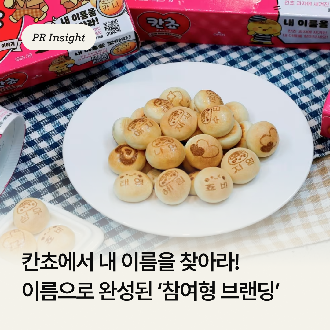 국내 신생아 이름 500개와 캐릭터 이름 4종을 실제 과자에 새겨 출시한 이번 캠페인은, 소비자가 ‘내 이름이 적힌 칸쵸’를 찾아 SNS에 인증하는 방식으로 진행되었어요. 사람들은 자연스럽게 친구, 가족, 연인의 이름을 떠올리며 제품을 찾고, 브랜드는 소비자의 일상 속으로 스며들었답니다. 💛 |